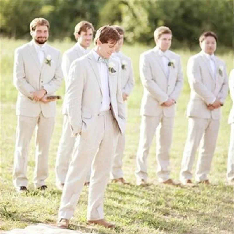 Beige Men Suits Pure Pants Wedding Groom Formal Work Wear Plain