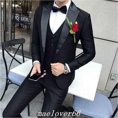 Slim Fit Black Groom Wedding Tuxedos Peak Lapel Formal Prom Party
