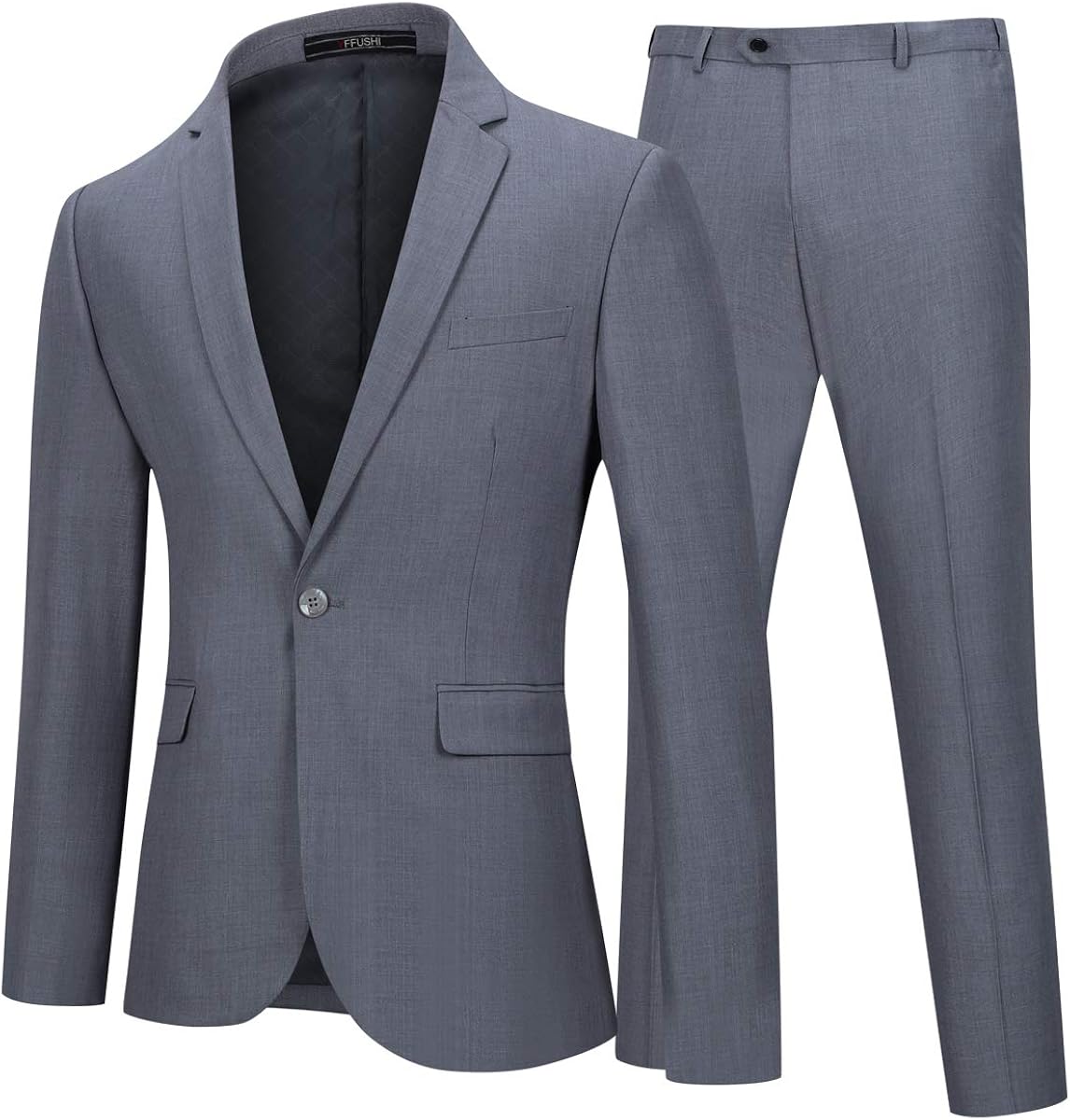 Yffushi Mens 2 Piece Suits One Button Formal Slim Fit Solid Color