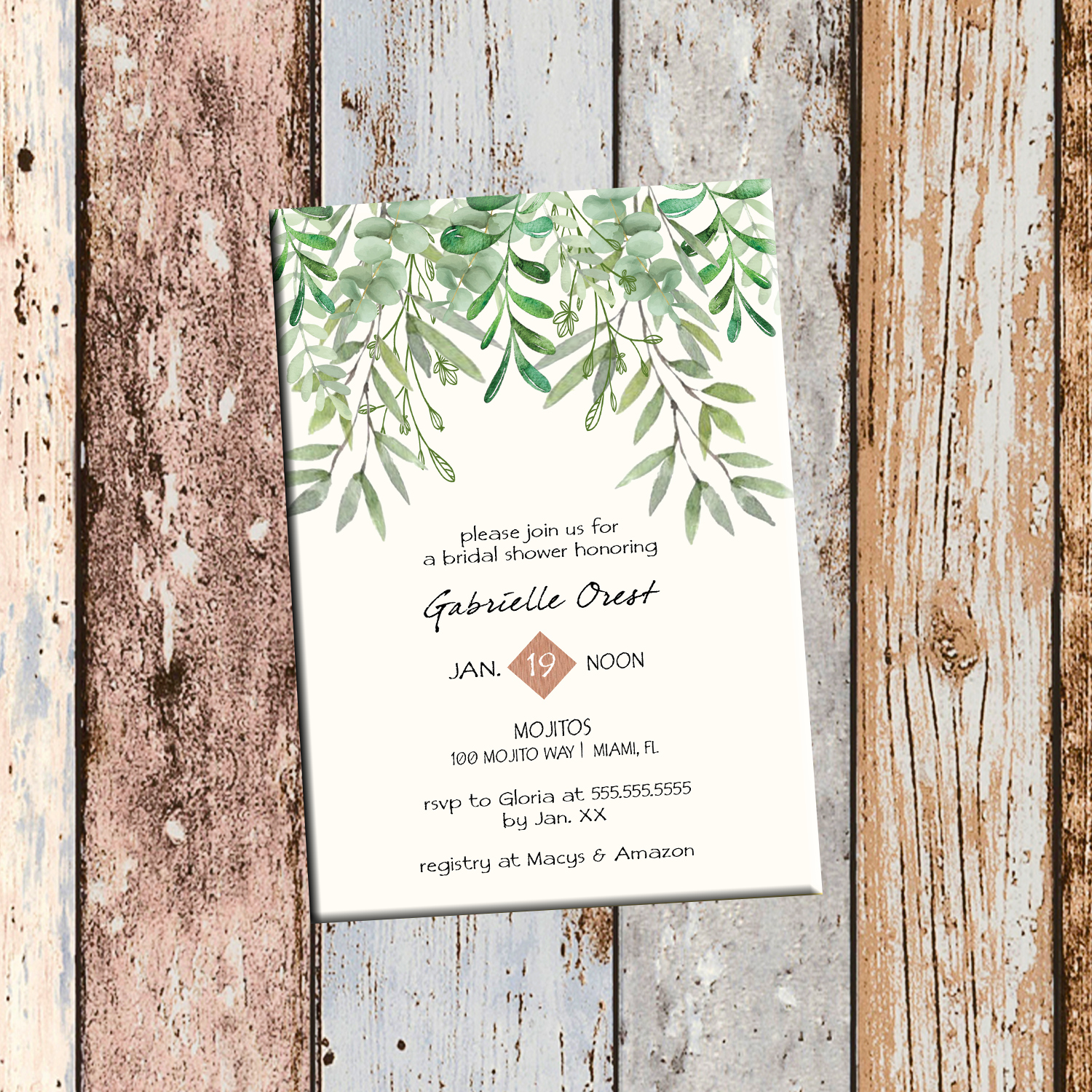 Boho Leaves Watercolor Bridal Shower Invitation Wedding Shower