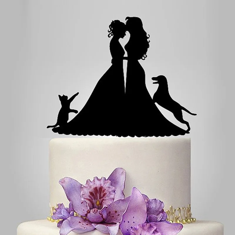2017 Acrylic Lesbian And 1 Dog 1 Cat Wedding Cake Topper Wedding