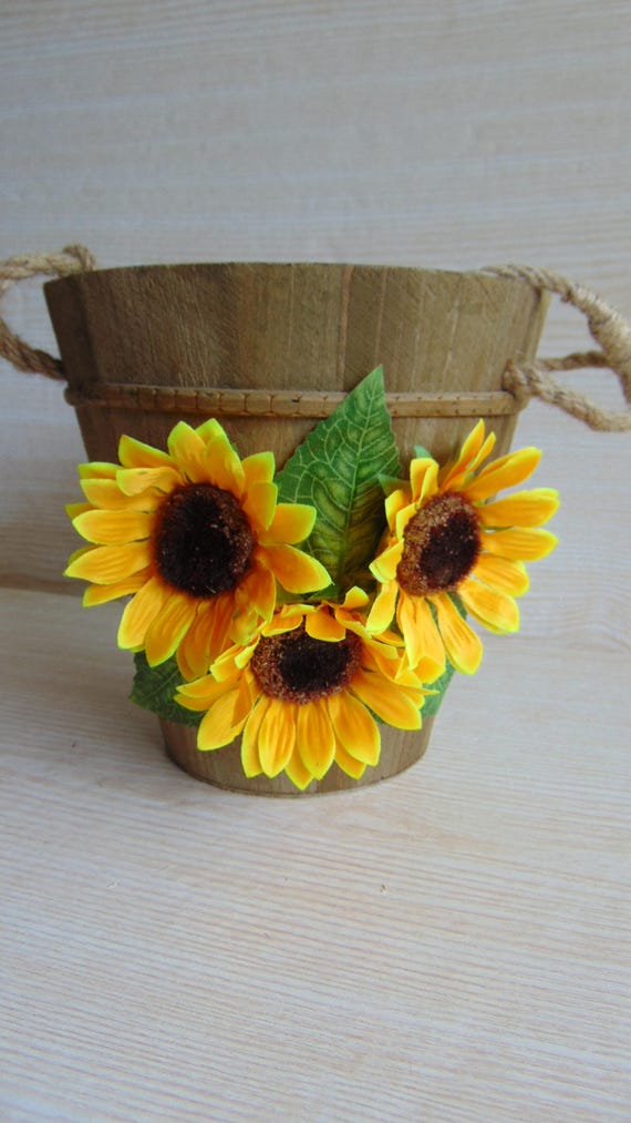 Rustic Flower Girl Basket Wedding Decoration Wooden Bucket Etsy
