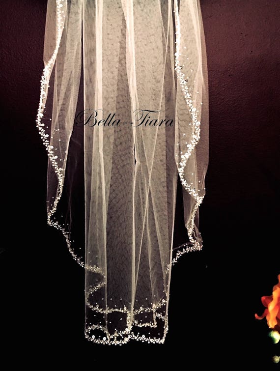 Cathedral Beaded Wedding Veil Beaded Bridal Veil Crystal Etsy