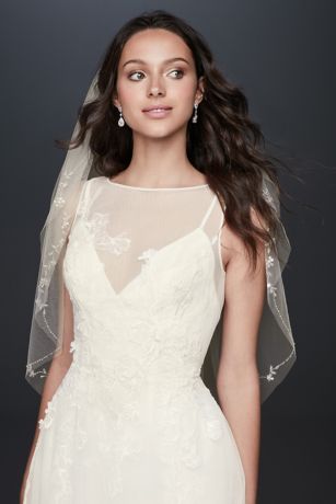Floral Embroidered Raw Edge Mid Length Veil David S Bridal