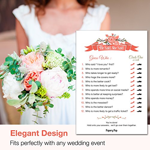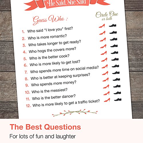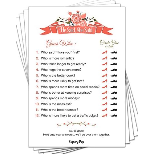 He Said She Said 50 Sheets Bridal Shower Games Wedding
