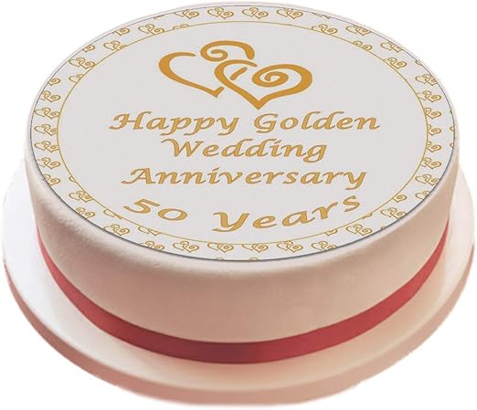 Golden Wedding Anniversary Cake Topper Edible Sugar Icing 7 5