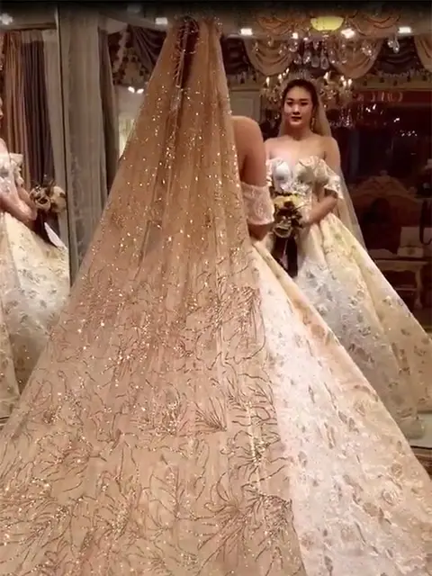 Sparkly Gold Veil 2019 New Champagne Color 3 M Long Trailing Bride