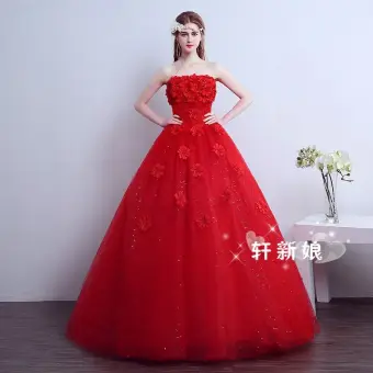 Tube Top Wedding Dress For Women Bride Summer Qidi Red Wedding