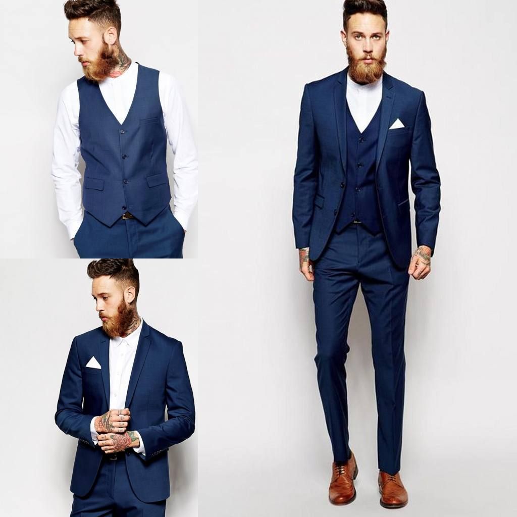 Navy Blue Wedding Tuxedos Slim Fit Suits For Men Two Buttons Groom