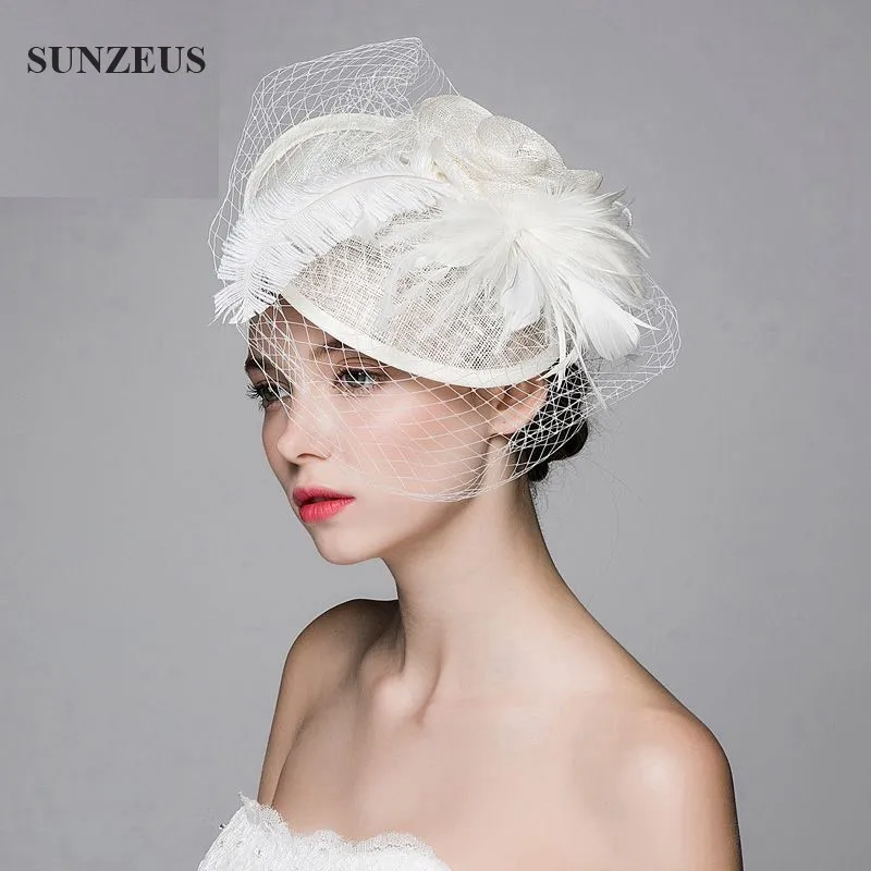 Elegant Ivory Birdcage Net Wedding Hats Bridal Fascinator Face
