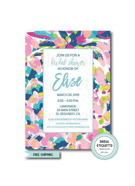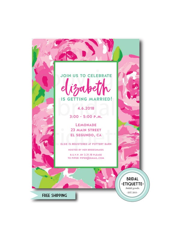 Rose Bridal Shower Invite Tropic Wedding Showersummer Etsy