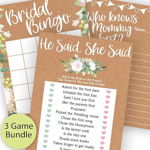 Amazon Com Bridal Shower Games Pack Bundle Kraft Wedding Shower
