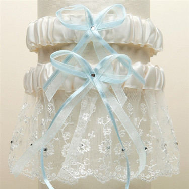 Embroidered Wedding Garter Sets With Scattered Crystals Ivory