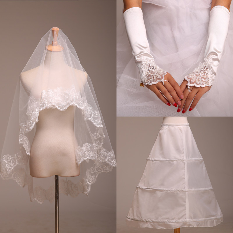 Buy Value 3 Sets Veil Panniers Gloves Bride Essential Lace