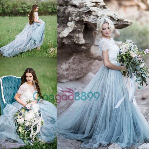 Discount Sky Blue 2019 Modest Tulle Country Wedding Dresses Lace