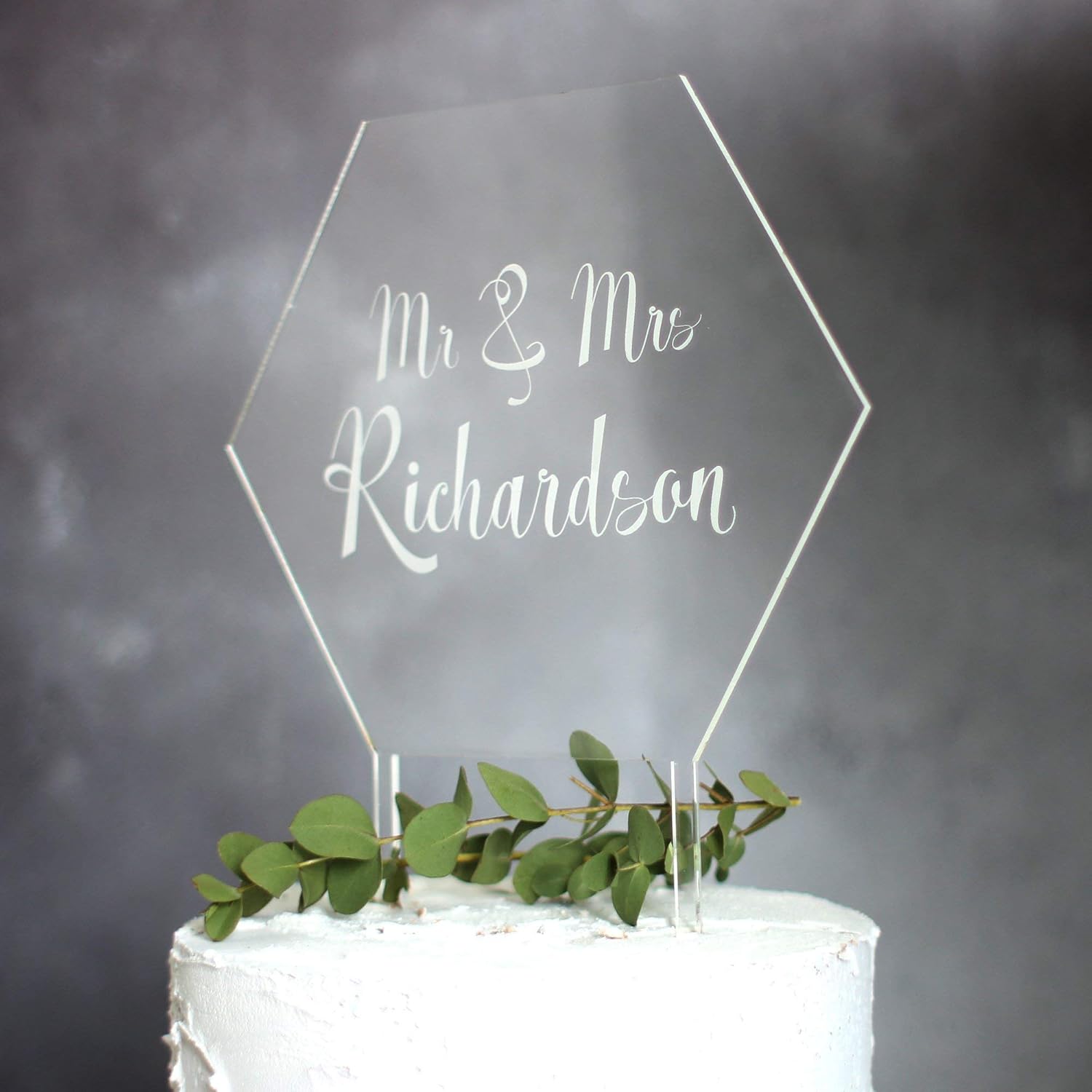 Personalised Acrylic Cake Topper Hexagon Cake Toppers Wedding