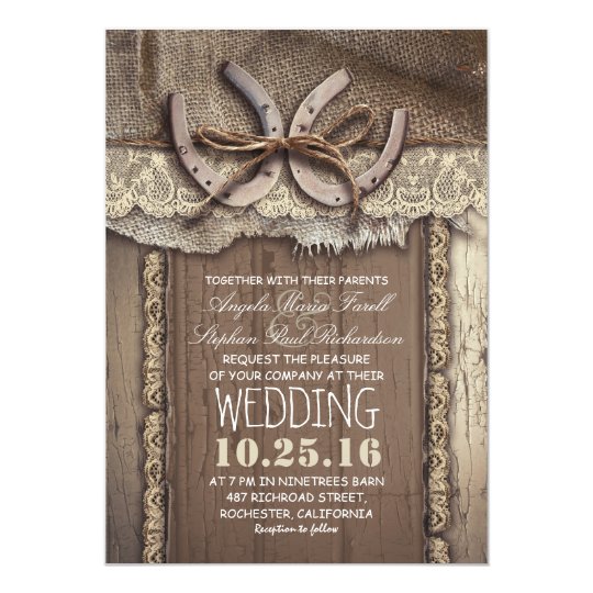 Rustic Country Horseshoes And Burlap Lace Wedding Invitation