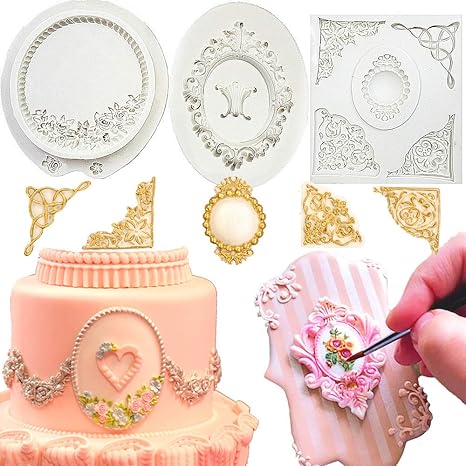 Set Of 3 Jevenis Vintage Frame Cupcake Fondant Mold Baroque Style