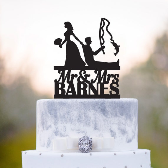 Mr Mrs Fishing Wedding Cake Topperfishing Wedding Funny Cake Etsy