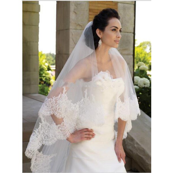 Qoo10 White Long Bridal Veils Lace Edge Lace Veils Comfortable