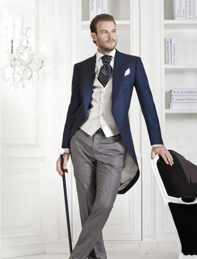 Fashion Navy Blue Tailcoat Men Wedding Tuxedos Excellent Groom