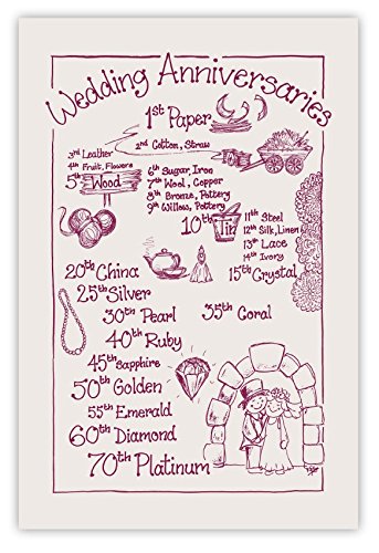 Wedding Anniversaries Tea Towel 100 Cotton Natural Maroon Amazon