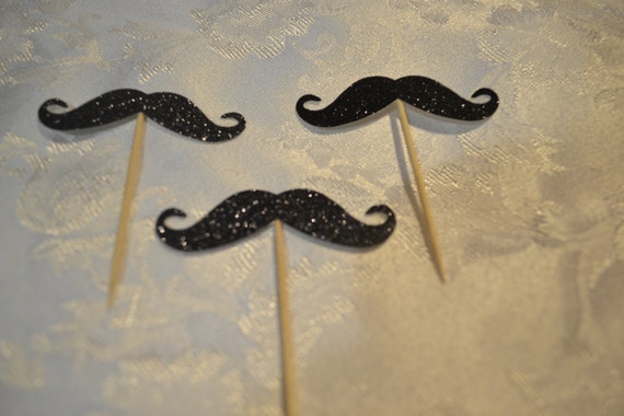 Black Glitter Mustache Cupcake Cake Toppers Wedding Etsy