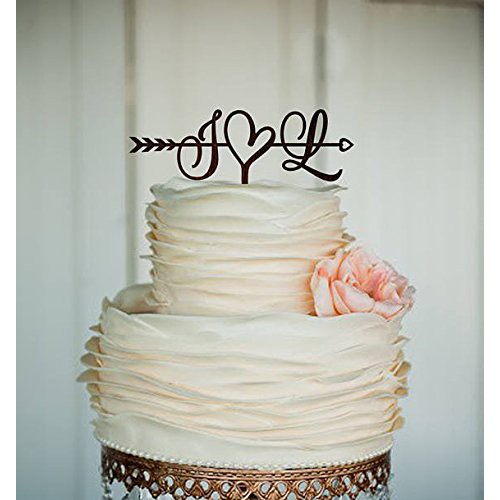 Initials Cake Topper Wedding Arrow Cake Topper Rustic Gold Cake