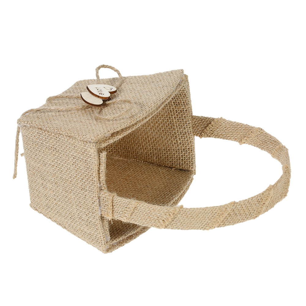 Vintage Rustic Wedding Burlap Flower Girl Basket With Wooden Heart
