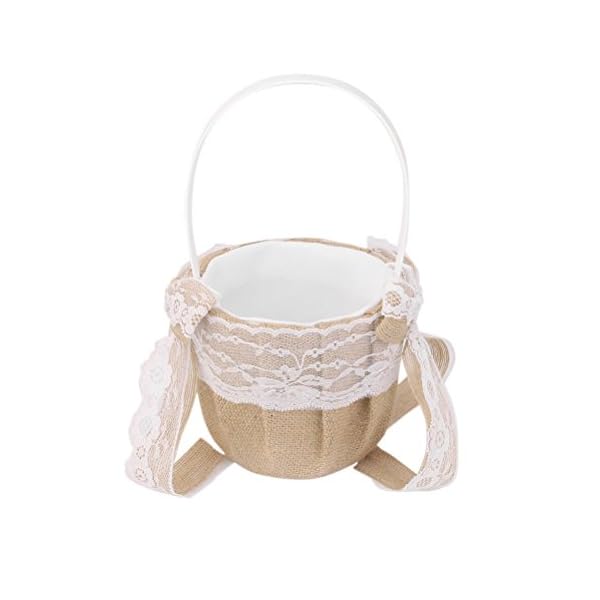 Rustic Wedding Flower Girl Basket Lace Petals Decorations