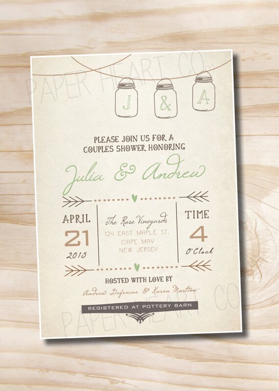 Mason Jar Invitation Couples Shower Bridal Shower Baby Shower Etsy