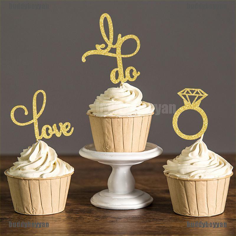 Ready Stock 0827 12pcs Set Glitter Love Cupcake Toppers Bridal