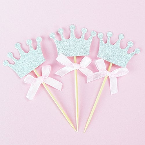 30pcs Cupcake Topper Silver Crown Cupcake Toppers Wedding Bamboo