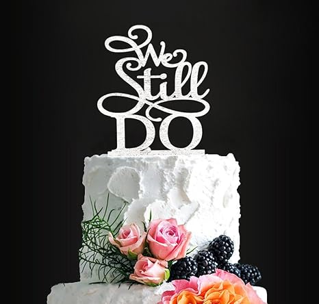 Glitter Silver We Still Do Romantic Wedding Cake Topper Elegant