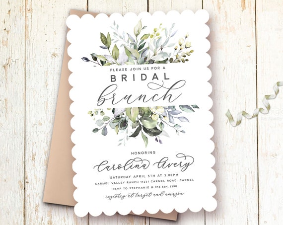 Elegant Bridal Shower Invitations Greenery Bridal Shower Etsy