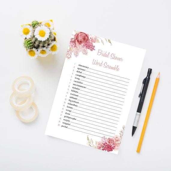 Bridal Shower Word Scramble Whit Answer Unscramble Wedding Etsy