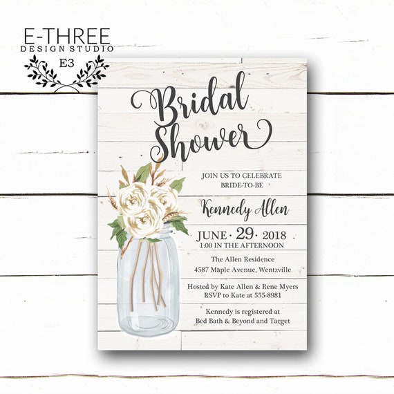 White Farmhouse Bridal Shower Invitation Shiplap And Flowers Etsy
