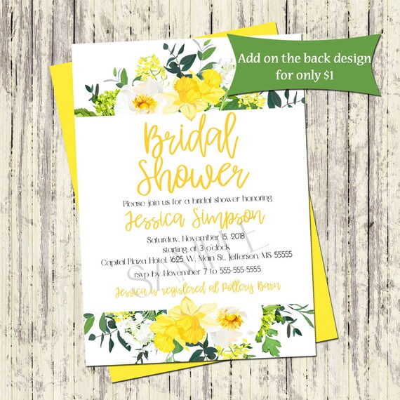 Bridal Shower Invitation Yellow Floral Bridal Wedding Shower Etsy