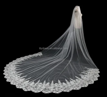 500cm Long 300 Cmwide Bridal Veils Beading Lace Veil One Layer