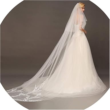 Black White Ivory Cathedral Wedding Bridal Veils Lace Applique