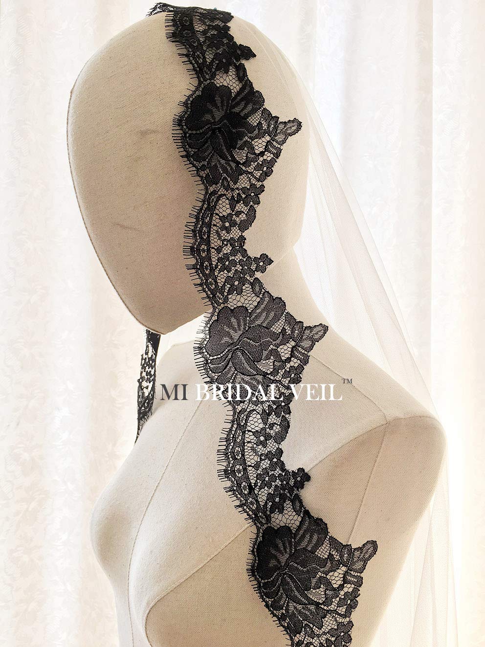 Amazon Com Black Wedding Veil Black Eyelash Chantilly Lace