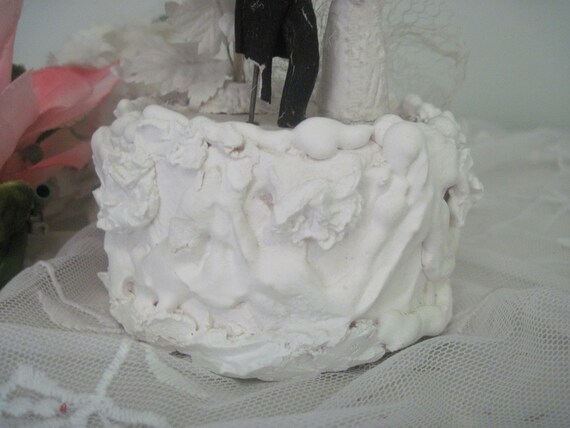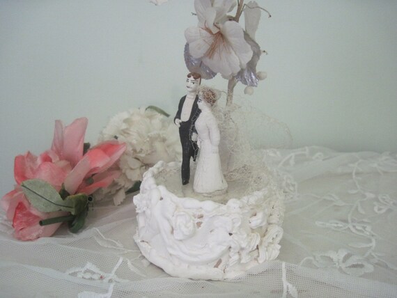 Bride Groom Figurine Victorian Style Lace Handmade Wedding Cake