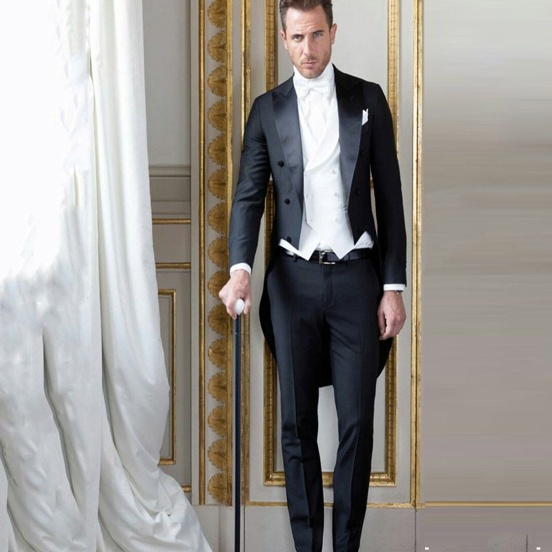 Black Tailcoat Men Suits Groom Wedding Tuxedos Wear Formal Morning