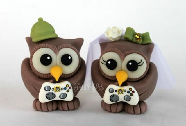 Game Controller Wedding Cake Topper Owls Bride And Groom Playing
