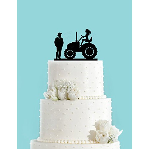 Wedding Couple And Bride On Tractor Acrylic Wedding Cake Topper