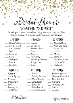 Amazon Com 25 Gold Whats In Your Purse Bridal Wedding Shower Or