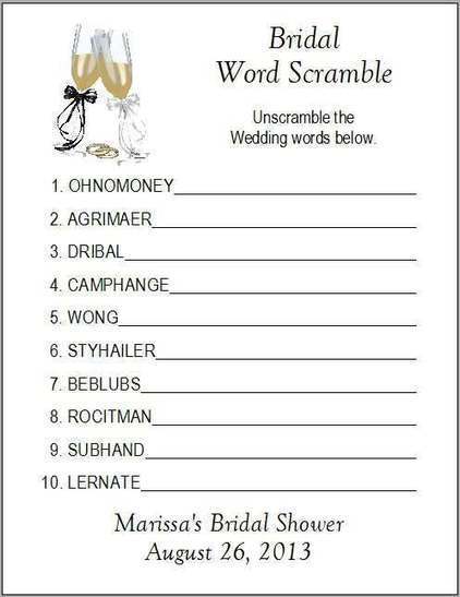 Bridal Word Scramble Other Fun Wedding Shower Games