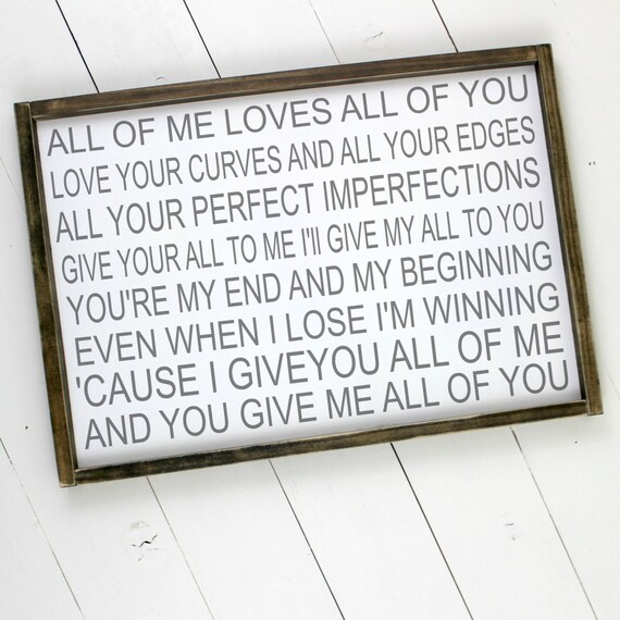 All Of Me Song Lyrcis Sign Wedding Song Sign Love Song Our Etsy