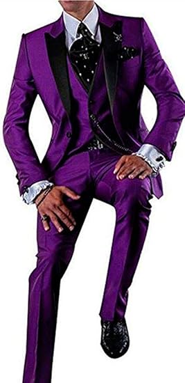 Men S 3 Pc Slim Fit Purple Suits Notch Lapel Wedding Tuxedos