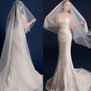 White Cathedral Wedding Veils Two Tiers Tulle Custom Made Wide